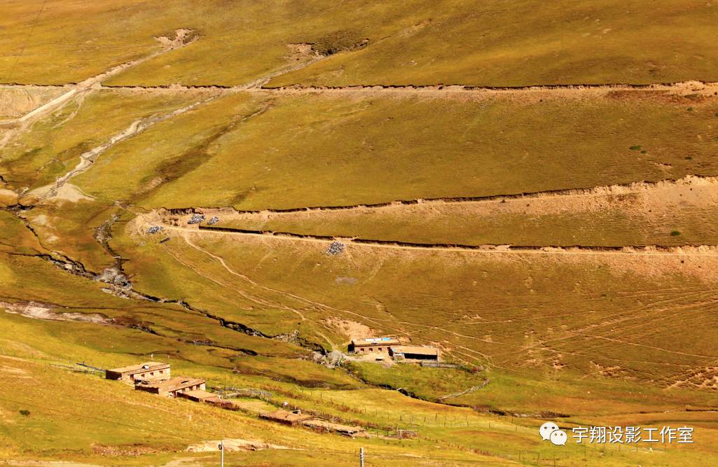 车子就在金色的山坡道路上穿梭,山坡低处有几栋民房,看上去像是被废弃的,现在已无人居住。是呀,美景固然难得,在这里生活也会相当艰苦。