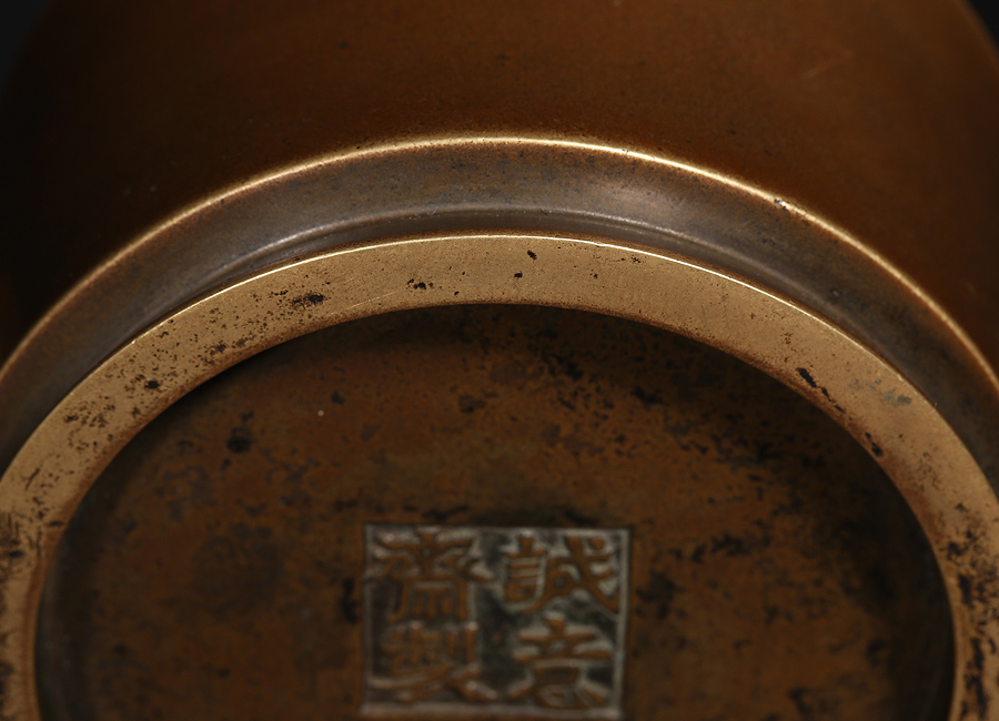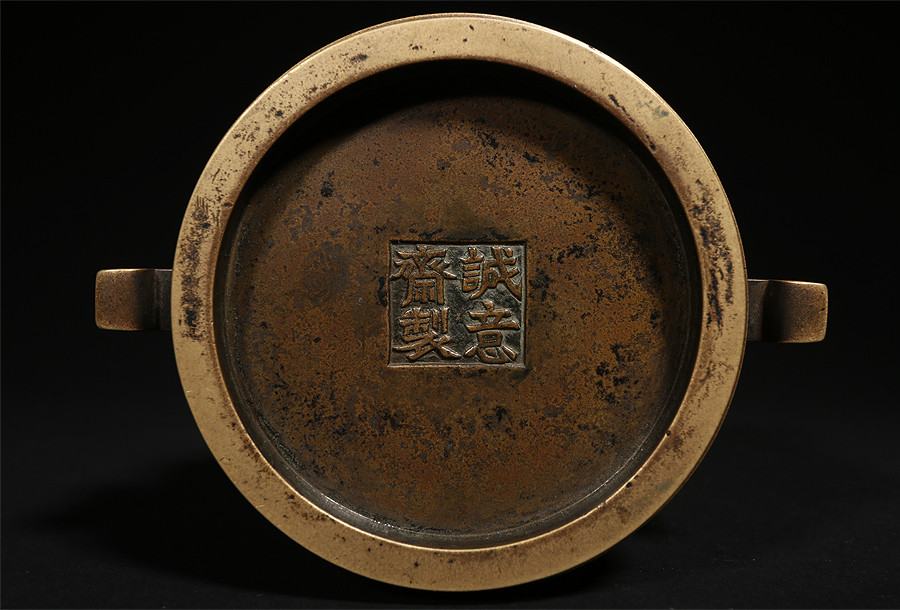 宣德炉面世之后,达官显贵、文人雅士对它青睐有加,因官方铸造的宣德炉数量稀少难以获得,于是委托工匠依照相同的形制和工艺铸造宣德炉,底部的款识往往使用个人名号或书斋名称。