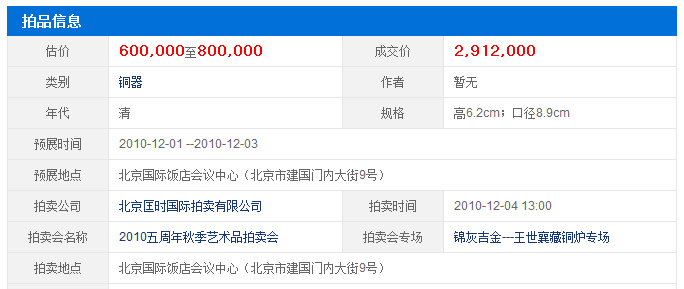 古代铜炉的铸造制作成本高昂,因此私家款宣德炉不存在批量制作,其中的精品也是孤品,价格最近几年扶摇直上。