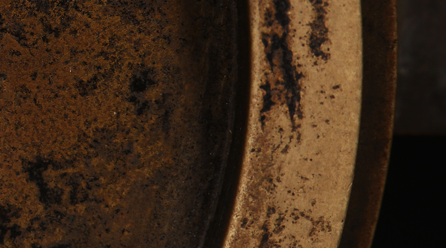 所以本身的材质必须通过底部或底足磨损处来判断:上图炉底经多年使用,露出的材质色如黄金,质地细腻。