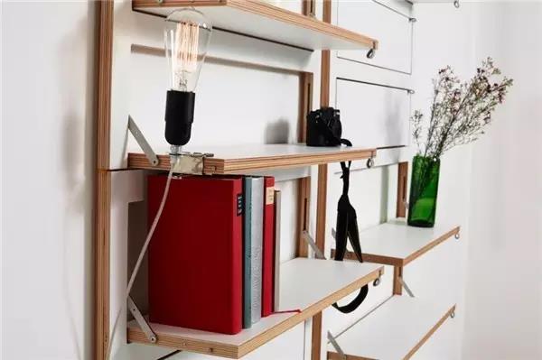 可折叠的搁架、搁板,有多种不同的尺寸、颜色,既可单独使用,也可以相互之间连结起来,组成一个系统