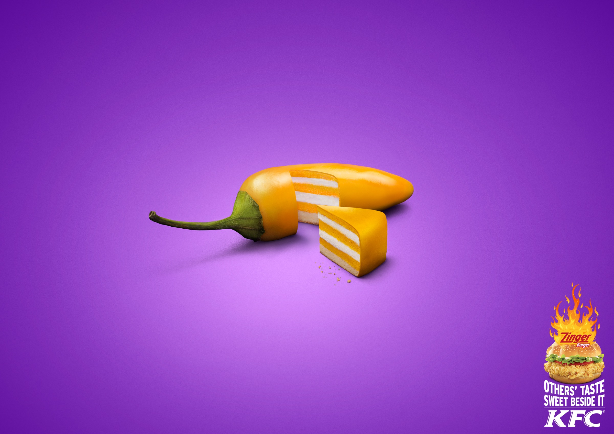 注意,这里没有任何标语或其他太明显的解释表明“酱太辣,吃了会出汗”。广告的含义留给观众自己理解。 试着把你的广告想像成一个好笑的笑话,如果它足够巧妙和完整,你便完全不必进行解释。