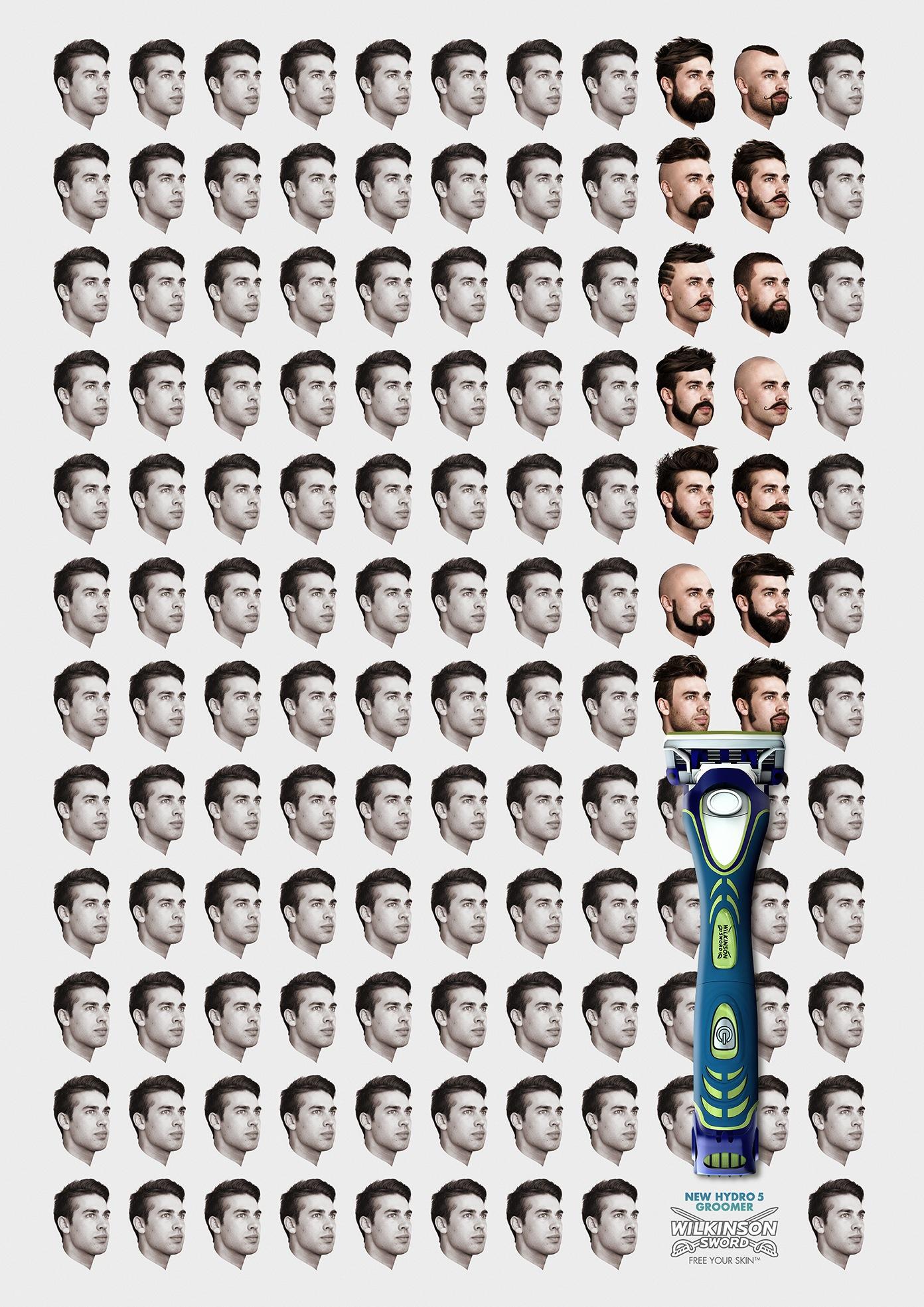 Wilkinson Sword使用三个广告而非一个广告作为一系列来表达一个强大又巧妙的概念,通过囊括不同类型的人群进一步直接扩大了目标消费群。 简而言之,Wilkinson Sword针对的不仅仅是某一类人,而是整个剃须刀使用群体。