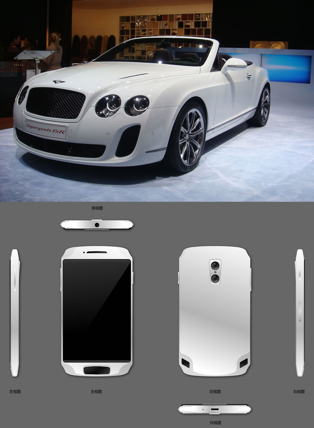 宾利——主要将车头进气孔形状运用到了听筒、HOME键和背部外放孔,同时将车头的“两层嵌套”线条用到机身、HOME键及摄像头。