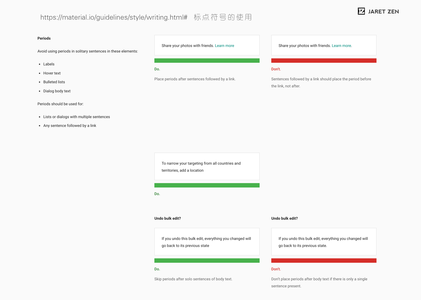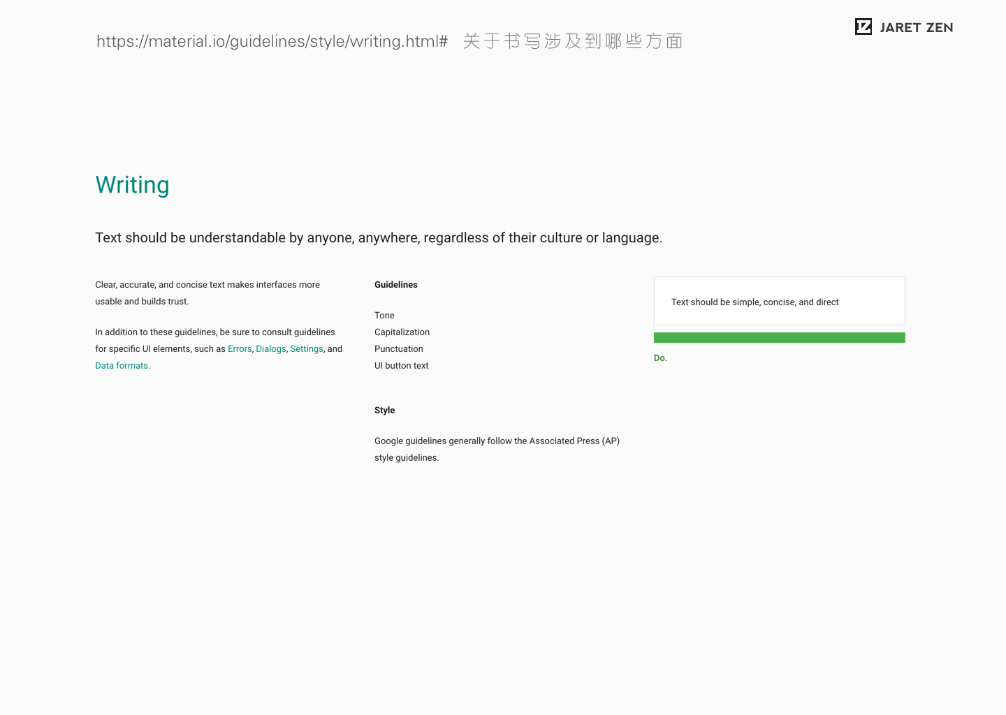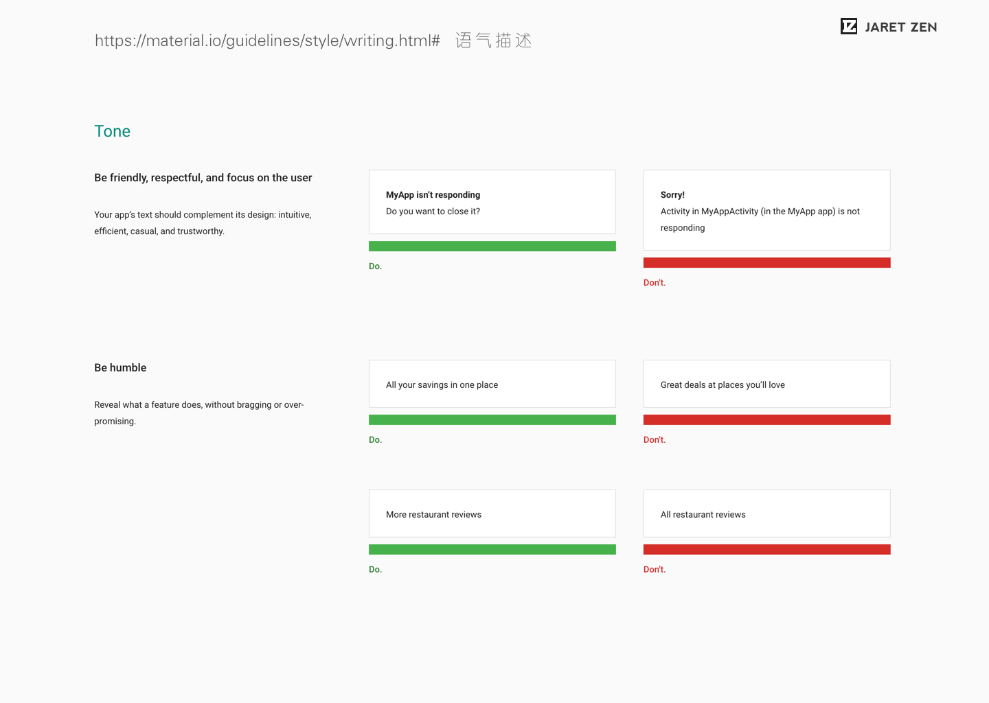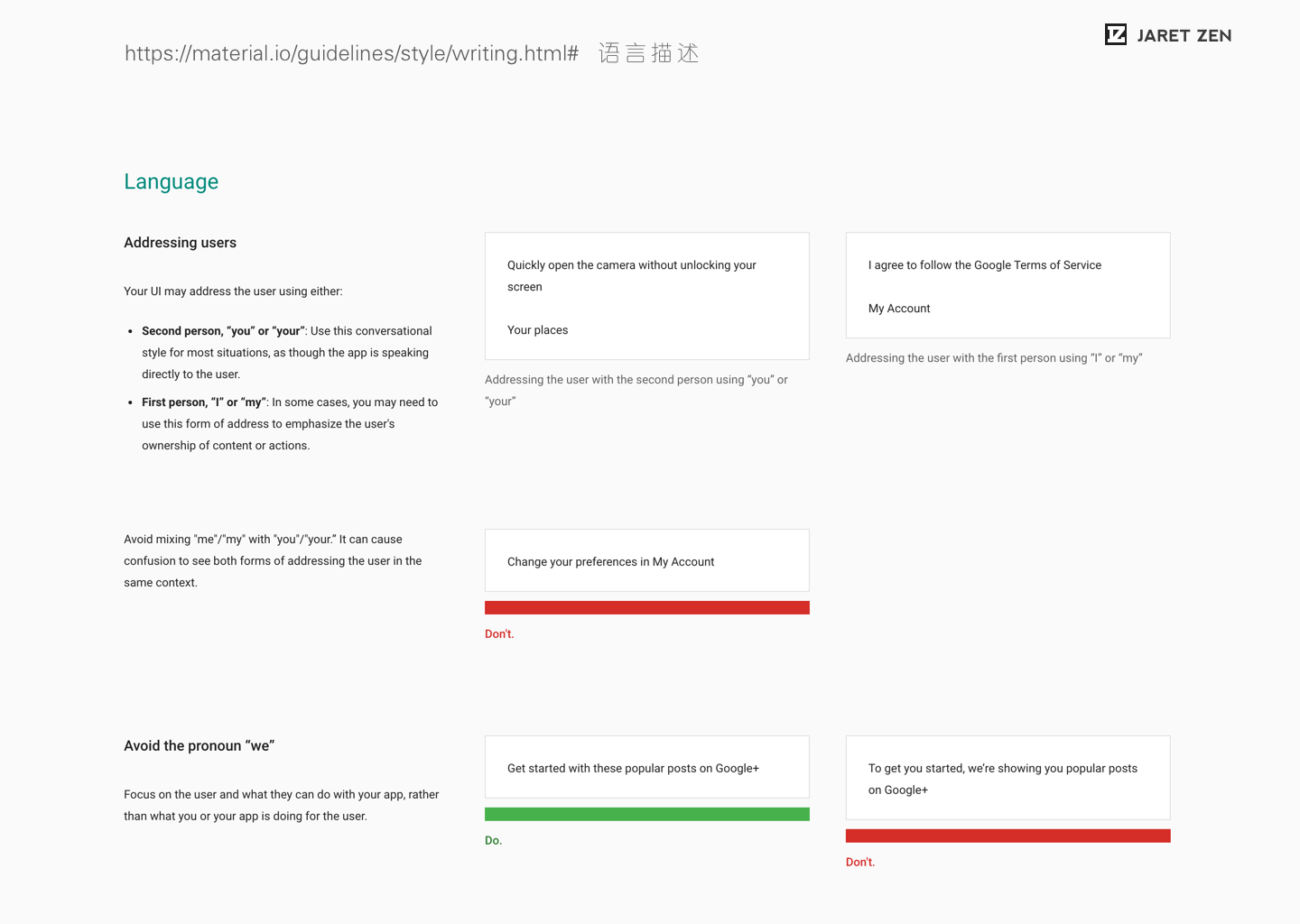 Material Design中对于语言文本的描述从用词本身到语气语调,甚至到标点的使用都有详细的建议。