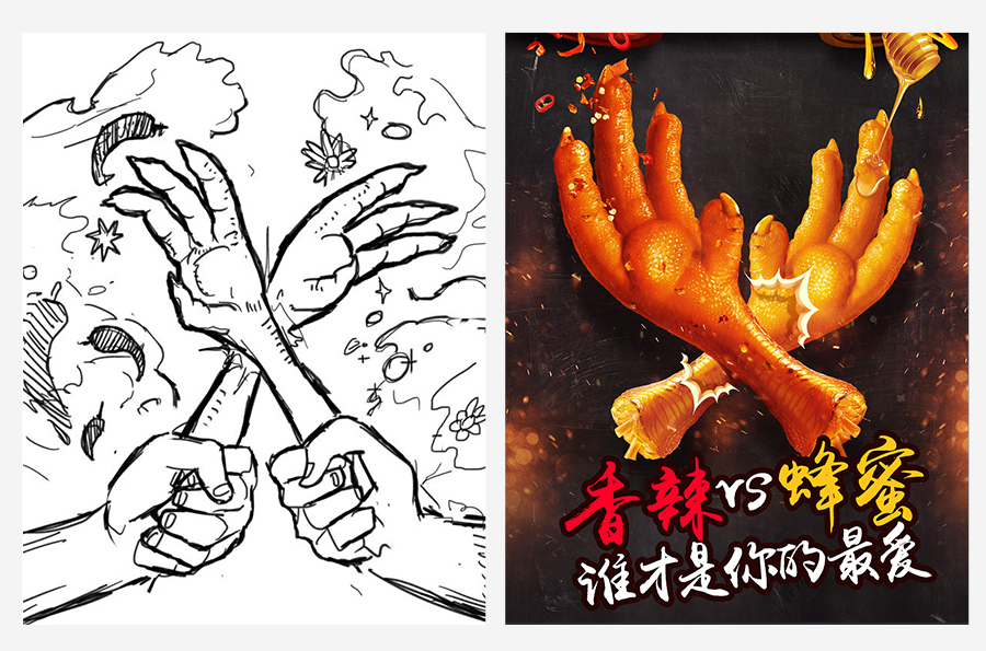 场景:将摇滚精神进行到底,时刻记住自己的招牌的rock 手势,一口咬住骨脆劲爽肉满的鸡爪,百般滋味就如一首唱进心里的摇滚乐的美妙感受。