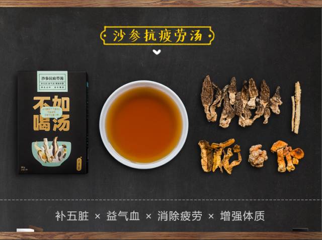结果出来,印证了我们的猜测:市面上炖汤材料的受众大部分是中年妇女(当时自动脑补了我妈的邋遢形象),可喝着汤长大的8090后,他们是有喝汤的需求的,但面对8090年轻人(尤其是白领阶层)开发“适合他们”的汤包,在市场几近空白。