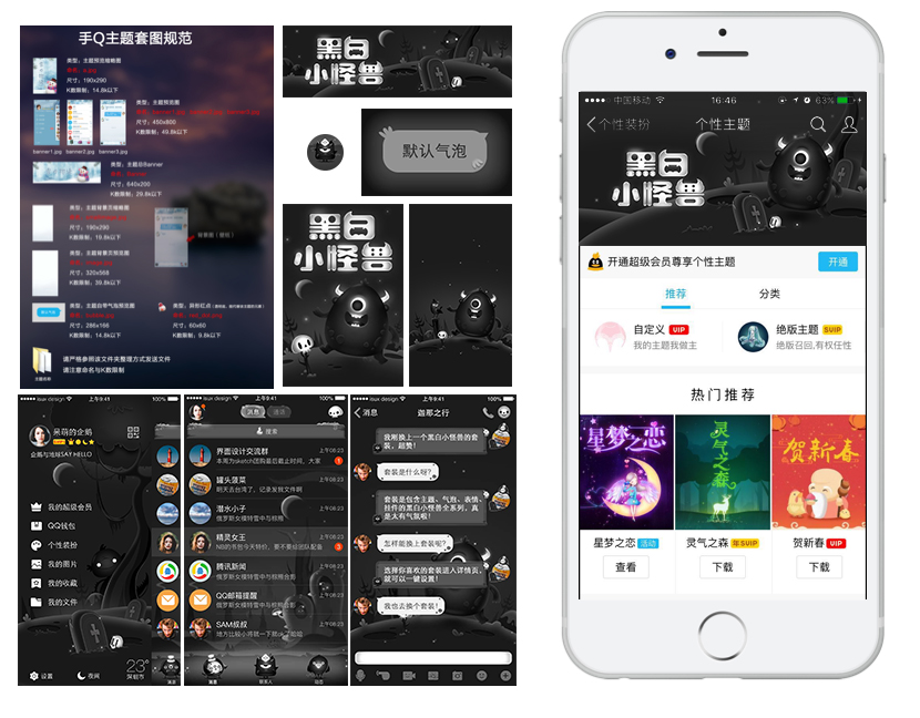 最后,按套图规范输出预览图与效果图,就可以上架到手Q主题中心。