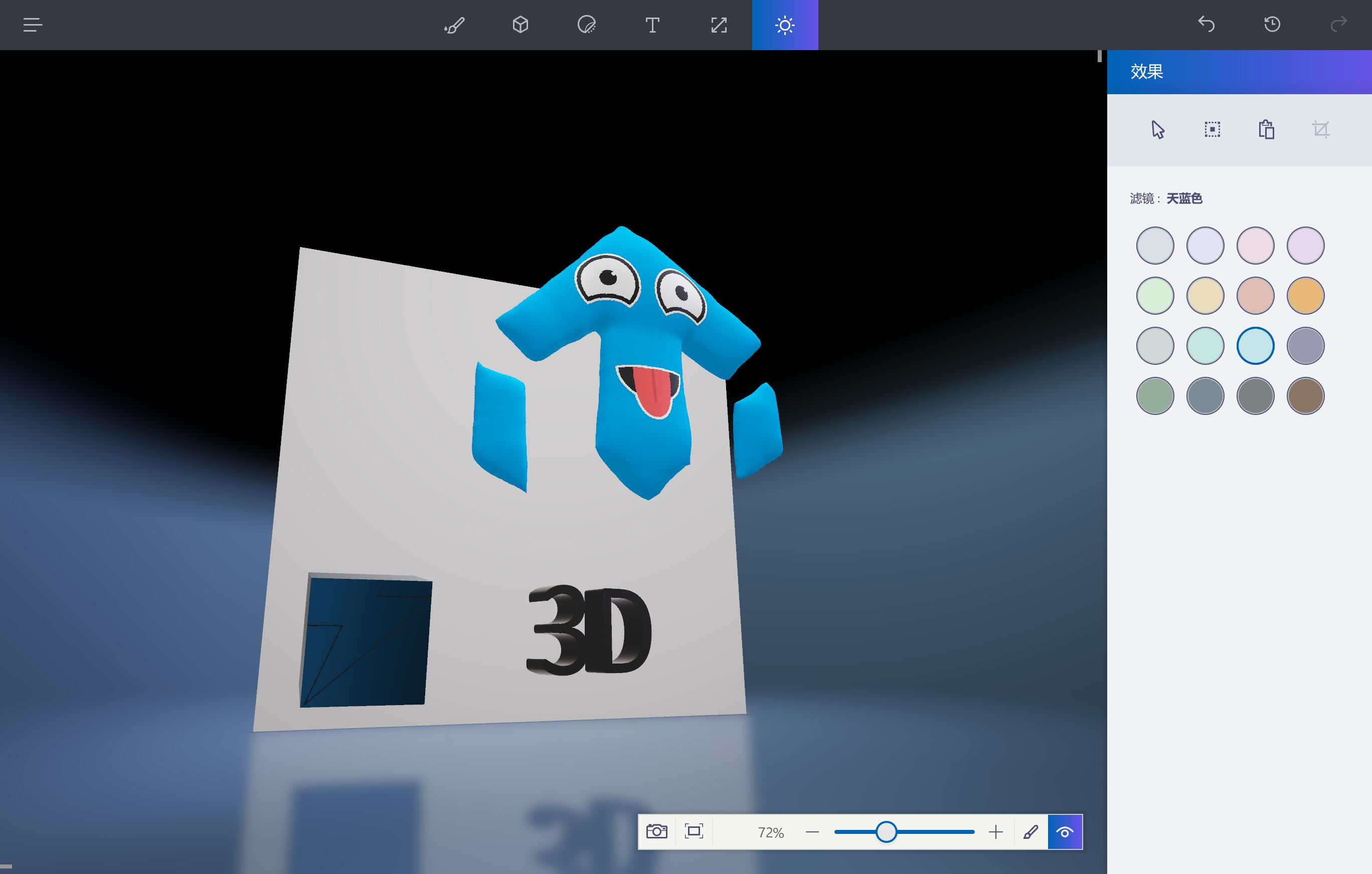 但简单的代价是效果单一,可控参数少,也就是可供发挥的余地少,很多三维效果其实很难实现,不足以替代C4D、MAYA等主流三维设计软件。从这个层面上说,Paint 3D更像是玩具,而不是工具。