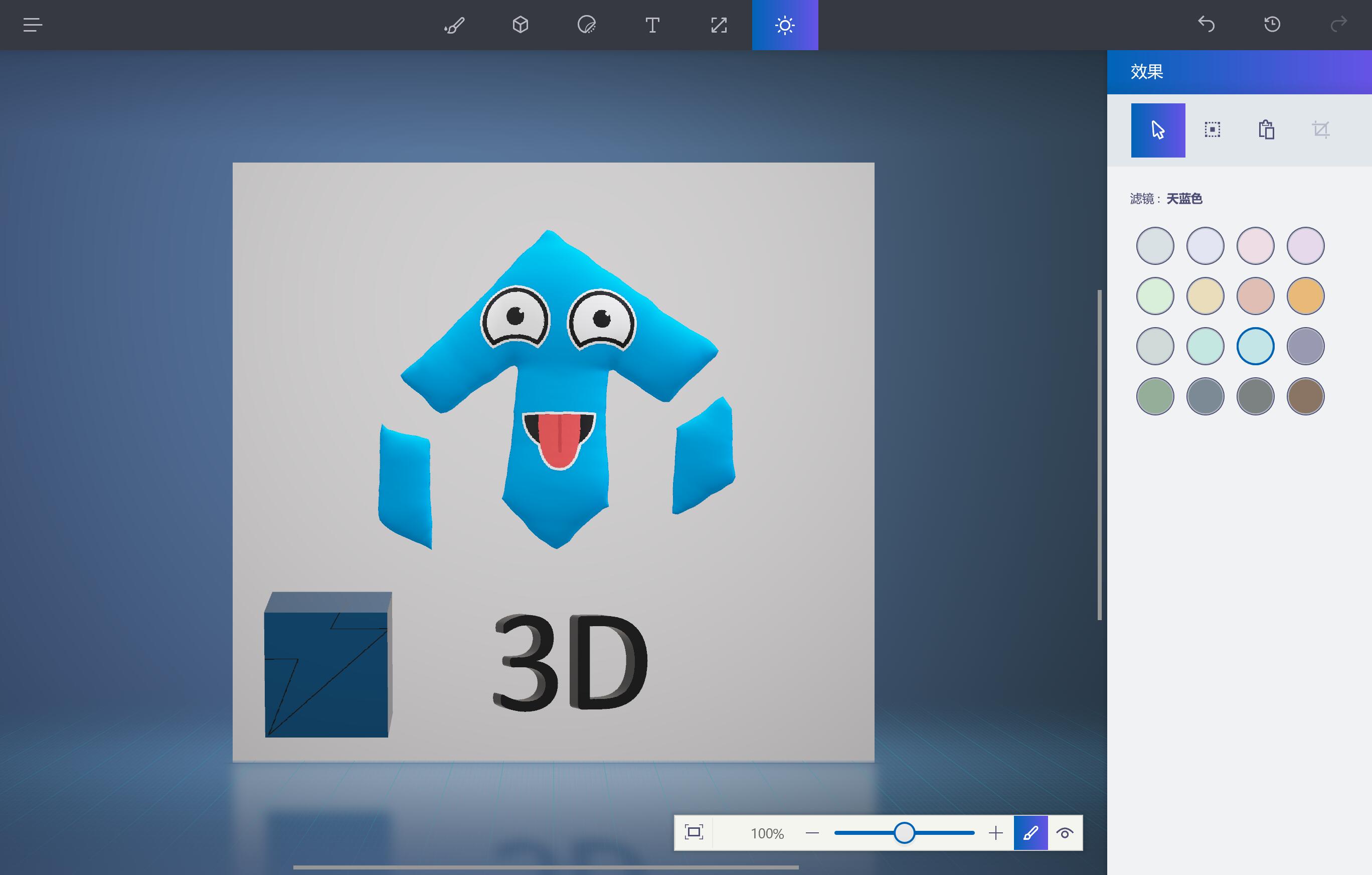 Paint 3D的创作思路跟常见的MAYA、C4D等三维软件不同,前者属于“画出”物体,后者是“建造”物体。所以Paint 3D的功能和体验都充满了“自由”“随性”“灵感”这类关键词,确实对于想做简单三维效果,却又不想学习复杂三维软件的童鞋来说,这个软件会是一个小惊喜。