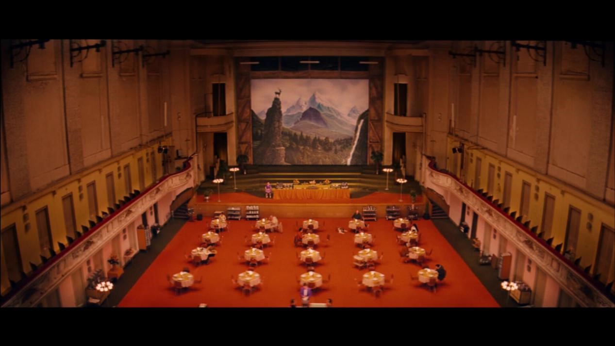 布达佩斯大酒店被称为“强迫症的福音”就是因为影片中大量的布景是对称的:酒店大堂、人物行走路线、火车的拍摄等都严格地按照中轴线分布,体现了导演一丝不苟的态度,也符合影片的设定。把欧洲绅士一板一眼的模样表现到极致,也透露着骨子里散发出来的优雅。