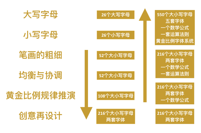 数学是真理探寻的捷径,符号是充满想象的设计,字体则是人类文明最重要的载体之一,蕴含着生命的基本规律。一切很自然的将黄金比例(生命密码)与字体(人类文明的符号)联系在一起。
