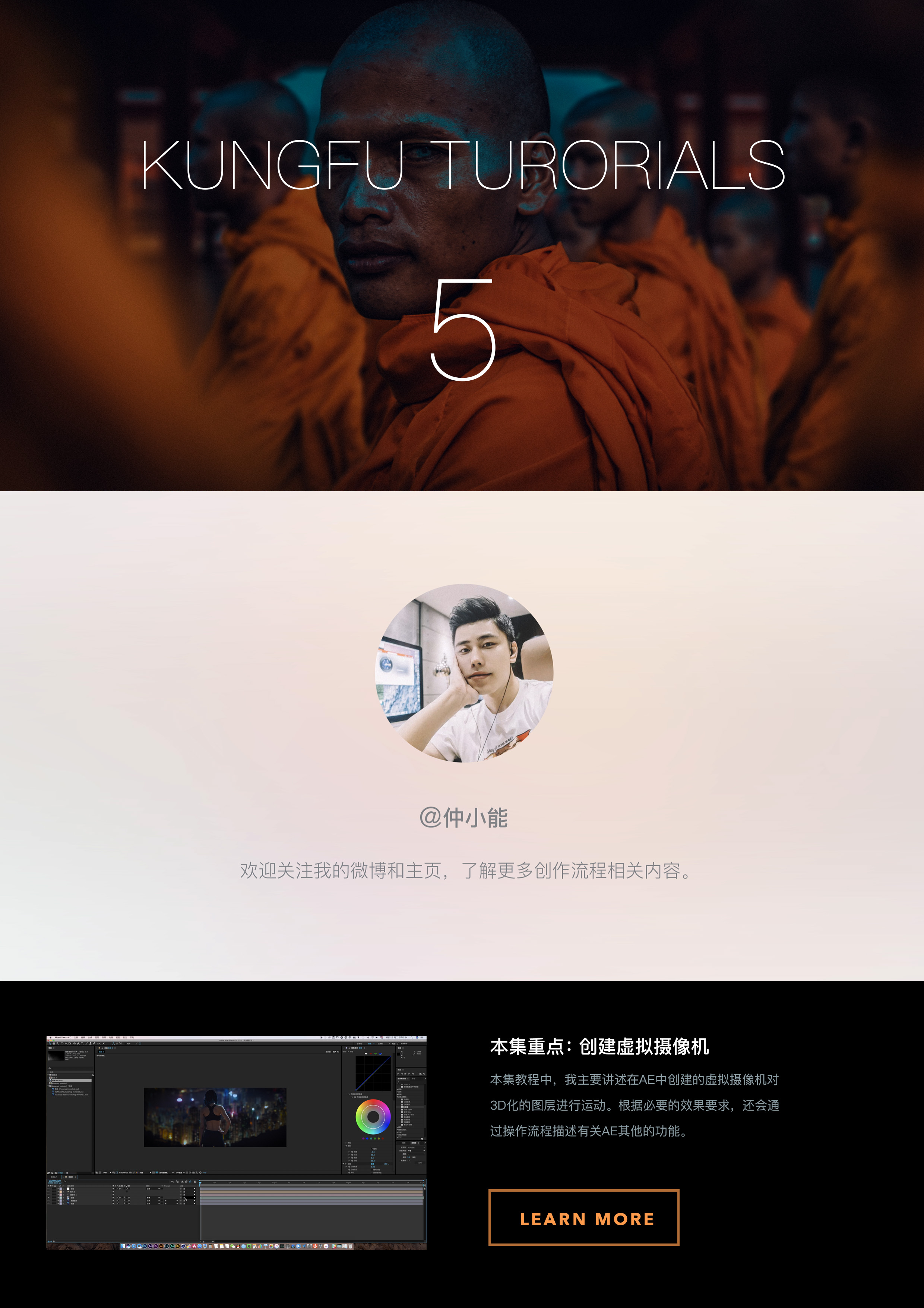 HELLO大家好,好男人就是我,我是仲小能,所谓有功夫,无懦夫,欢迎大家收看全新一集的功夫系列教程,本期我将开一个新坑,主讲关于AE系统软件的实战应用,目的是,希望让看过教程的同学能直接上手操作出片。