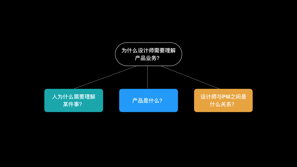 对于「为什么设计师需要理解产品业务?」这个大问题,我们可以通过提取「理解」「产品」「关系」这三个关键词,将其分解成三个小问题: