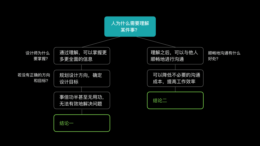 对于「为什么设计师需要理解产品业务?」这个大问题,运用结构化的思维方式,我们已经得出至少五个结论,每个结论都进行了层层推导和深入分析,思路清晰而完整。