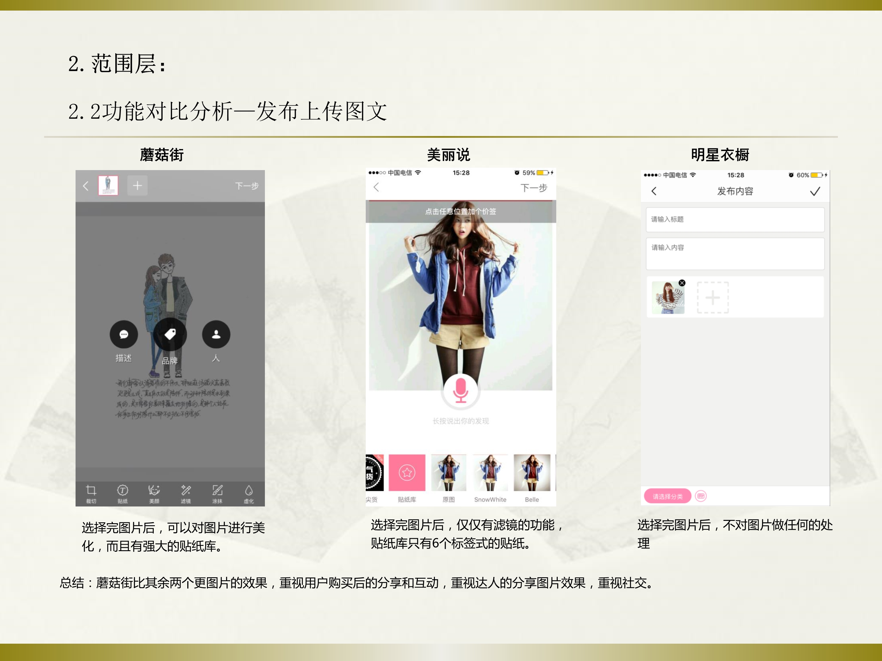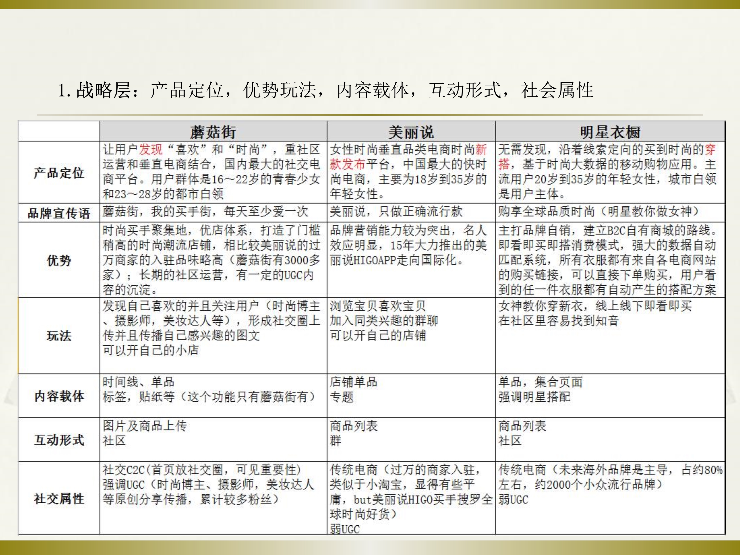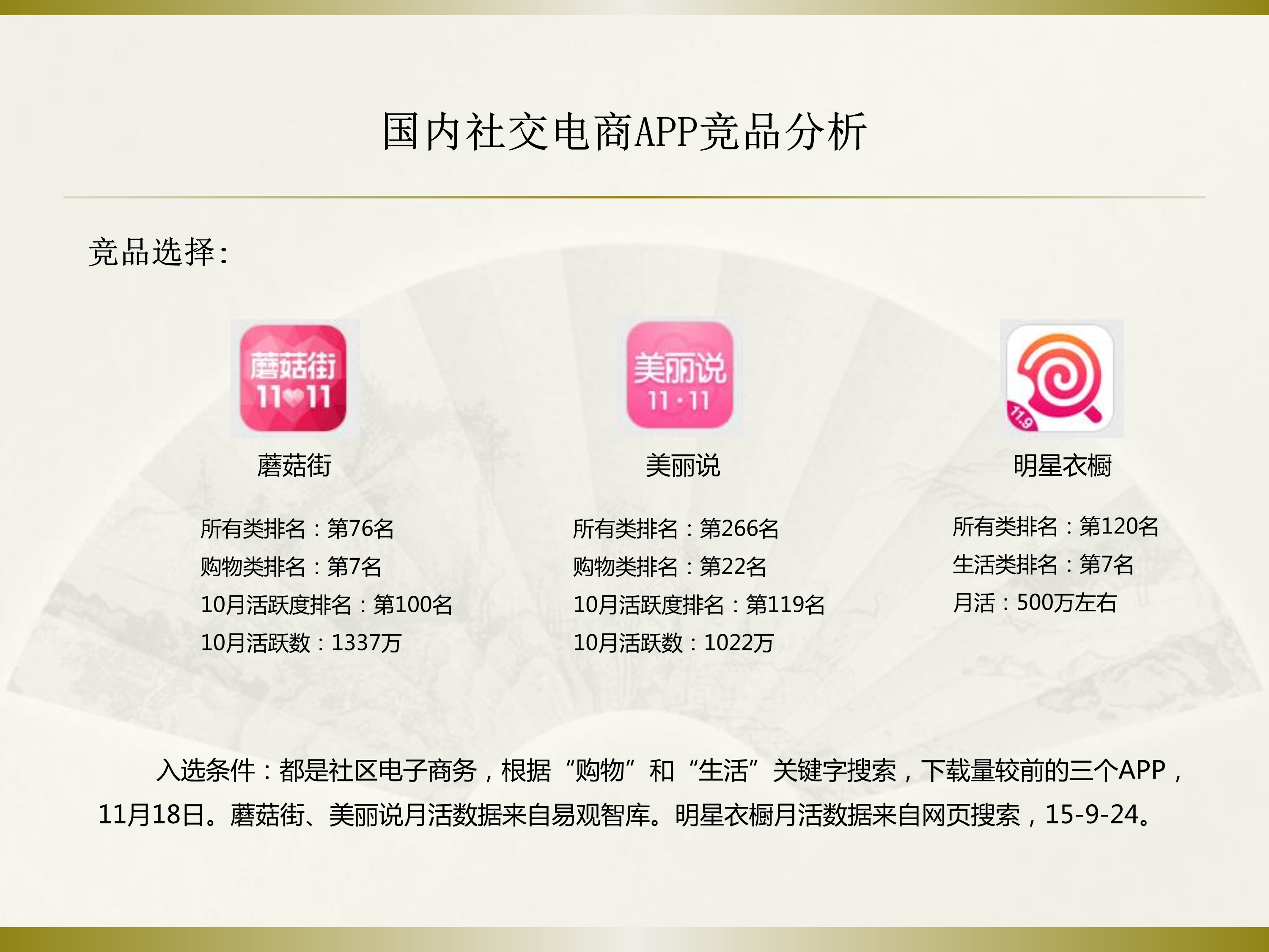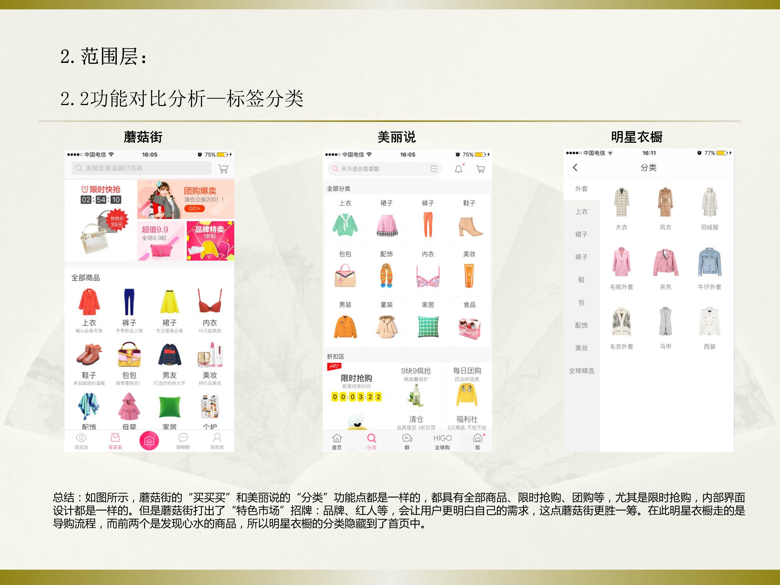竞品分析~蘑菇街、美丽说、明星衣橱三个APP社交+电商的竞品分析