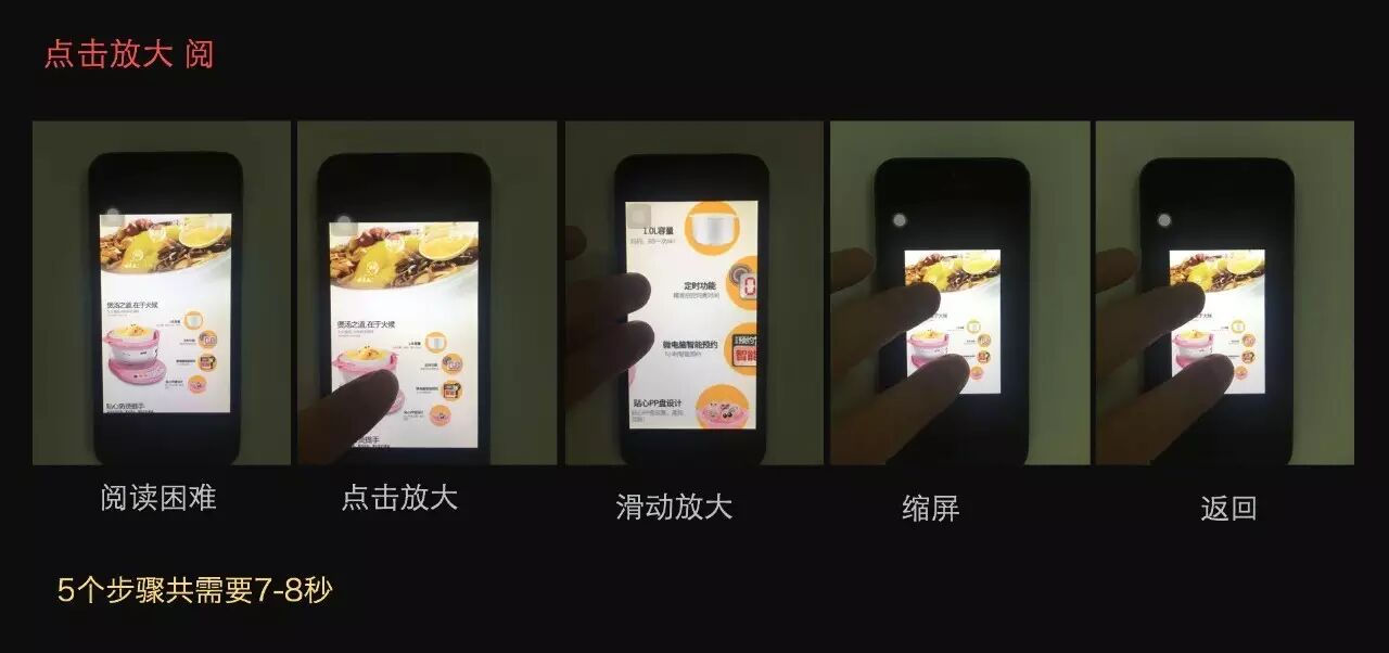 我们把角色转换一下,如果此时你在公交车上一手扶着抓杆,一手操作手机,看到上面两个产品,你想要看清楚需要点击图片放大,在移动内容,在缩小、返回页面,这几步骤就需要 7 - 8 秒,是你你能愉快的购物吗?