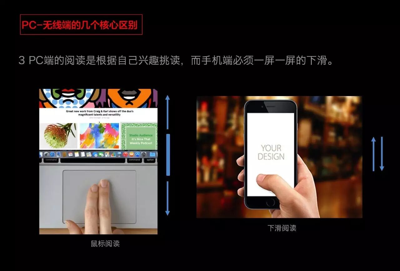 对比PC和无线端的设计,你需要全面改变自己的思维模式,总结为两点: