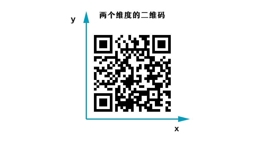 我:先别急嘛,我先给你讲讲原理。提到二维码呢,不得不提提它的前身条形码。条形码是将多个宽度不等的黑条白条按一定的编码顺序排列的标识符,它只能在x轴方向上存储,换个角度来讲,条形码只是在一个维度上识别的,所以也有称条形码为一维码。