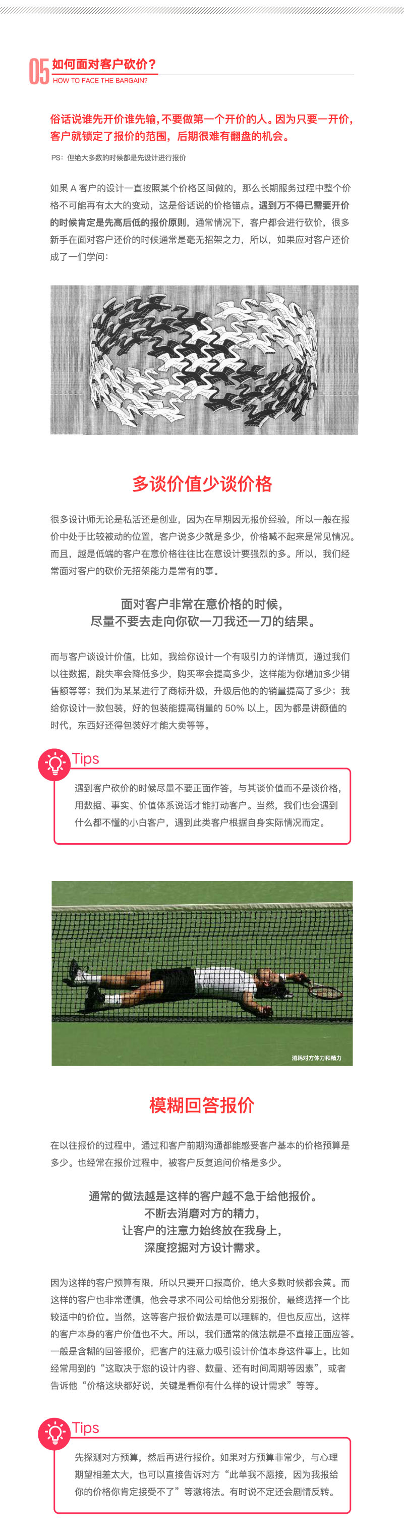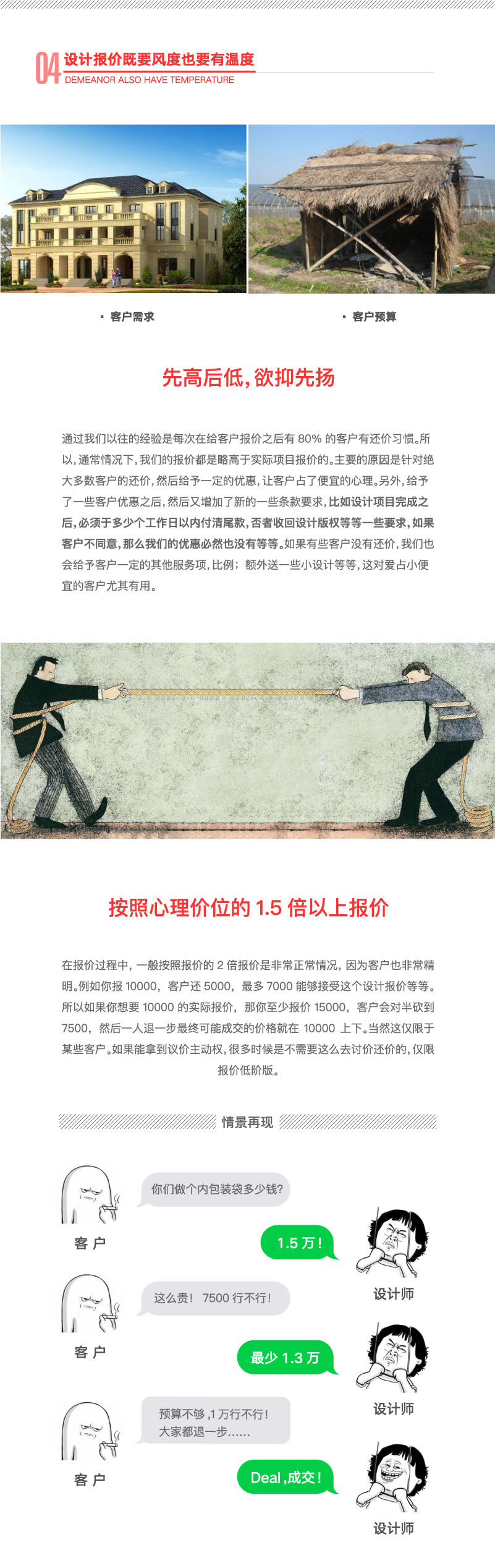 一个“好”的报价就是设计师与客户“共同高潮”,没有谁满足谁和谁先谁后,只有大家是否共同到达这个尖叫点。如何拿捏这个点成了报价成功与否的关键。所以,如何给客户报价成了一门优雅的艺术,这与创业无关,与你我有关。