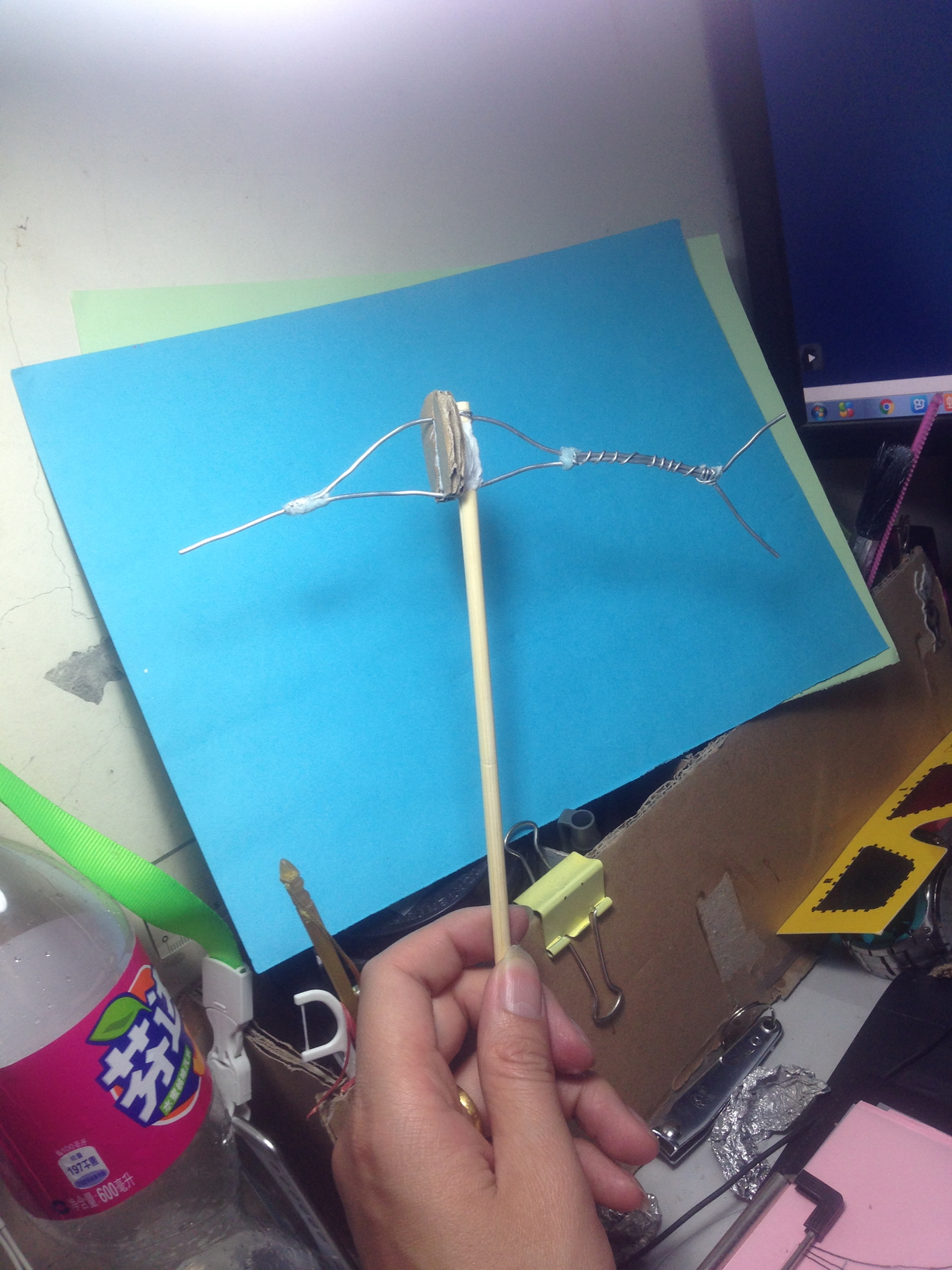 终于开始组装阶段了!这是依照设计图初组的,开始都是以铜丝支撑,后来发现打孔位置每次不一定都打的准确,而且小鱼还是斜着身体,更难处理,所以我推翻了这做法,改用榫卯模式了,组装方便。