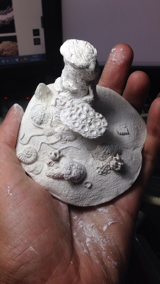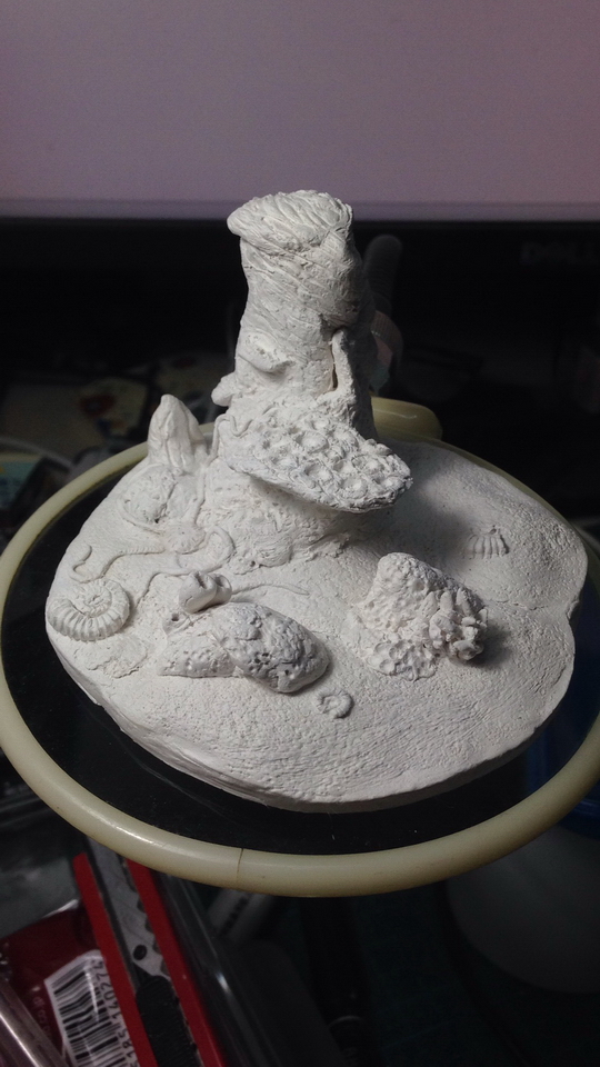 依照设计,底座没打算很多元素(做珊瑚要累死人,还不好翻模)也就大致做了一个环境,稍微布置了一点珊瑚礁、棘皮动物、鹦鹉螺、贝壳等海底生物。