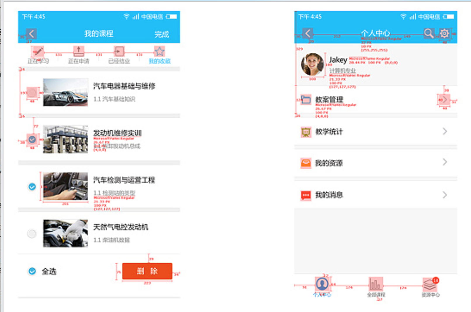 3.上述图标出现了45px的单数,因为软件自动吸附上去了显示了图标本身的尺寸,切图的时候记得输出个偶数尺寸的切片
