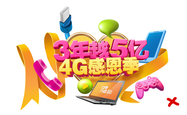 以某品牌春节期间的一则平面广告为例,主题是:办4G套餐,流量翻倍享。由于文案的卖点很明确,所以我们确定了以大文字为主的表现手法。
