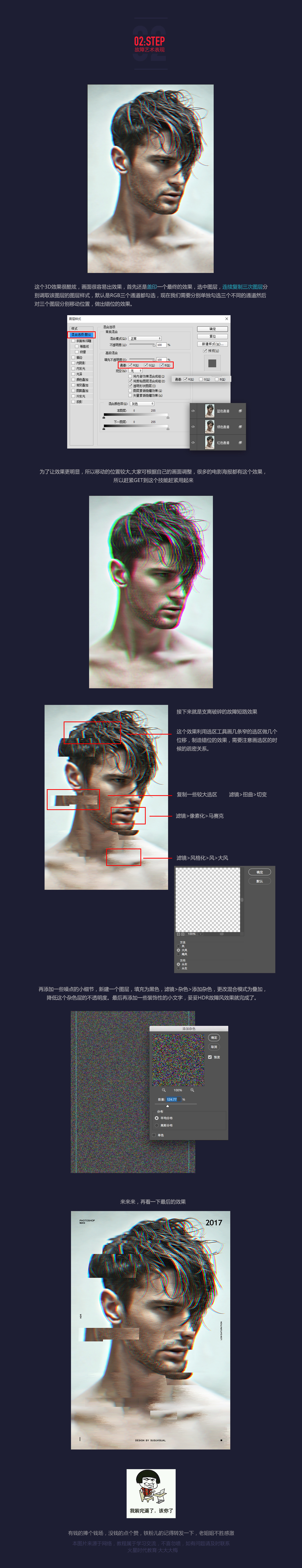 作为设计师不知道人像修图和时下流行故障风效果怎么制作,你就LOW掉了...