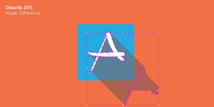 使用混合工具的结果就是得到了长投影。如果我们再玩玩改变颜色、透明度或者混合模式,将会得到不同的效果,改变渐变同样是一个正确而有趣的选择。