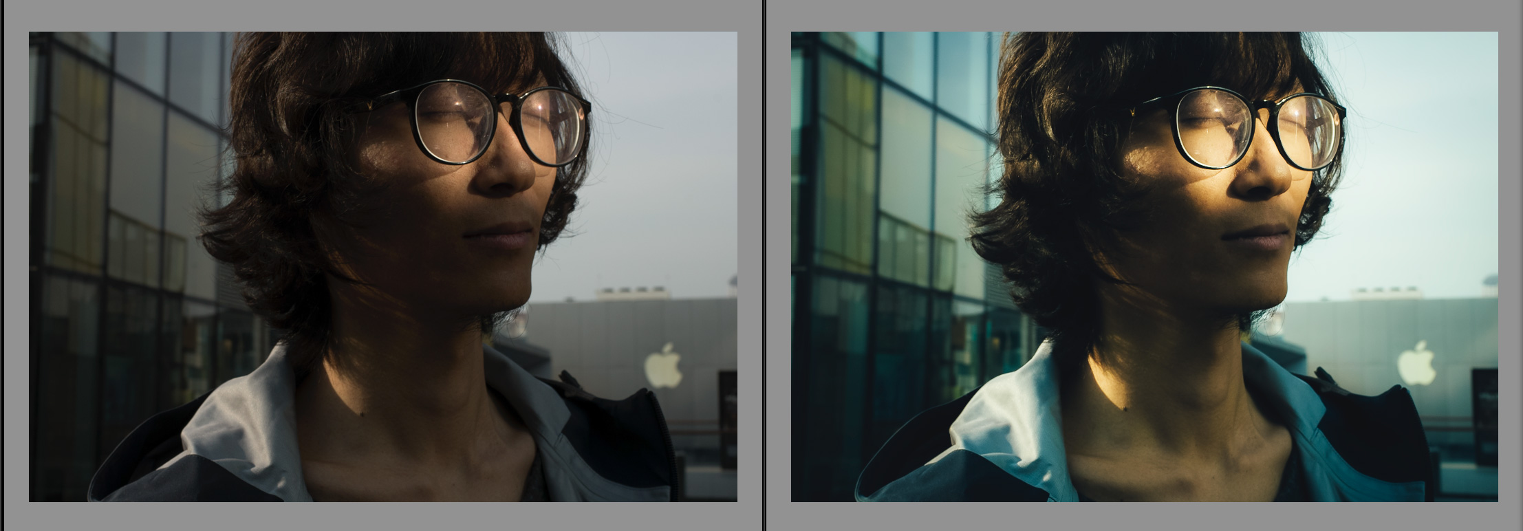 话说有一天跟 Evacuee 在三里屯遛弯,在二楼发呆时,一到阳光折射到了他的脸上,于是有了下面这张照片。