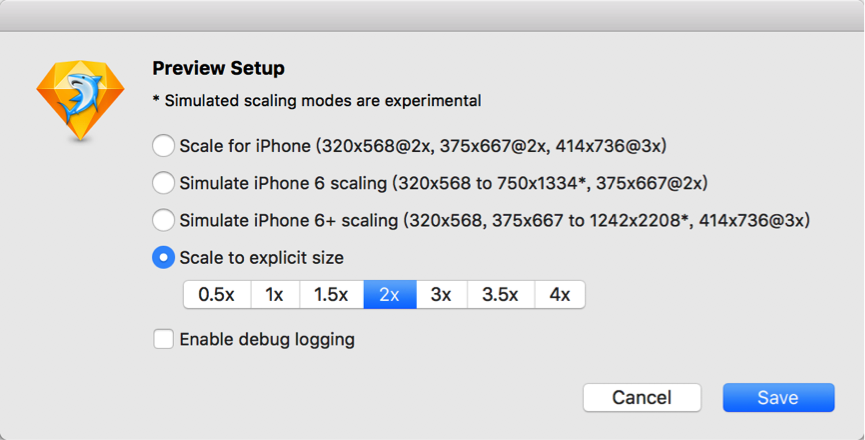 第二步:安装完插件后,在你的sketch中找到它,并可以设置预览参数,参数的设置,取决于你的预览手机分辨率与你sketch中画布分辨率的倍数关系(这点很重要,可参看我之前的帖子的思路)。
