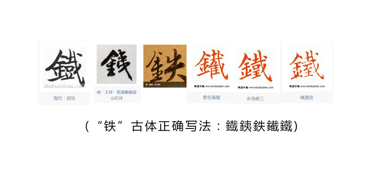 这位中书协会员的错误也很容易分析出错误原因,识的繁体字“識”的右侧写法和案例中“鐵”右侧的错误写法是相同的,显然将这两者搞混了。