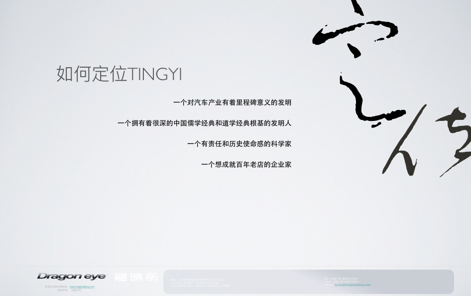 王庭义先生是一个低调的人,他并不想对自己和自己的品牌进行推广,之所以有这个案子,是因为程叔叔觉得他是一股企业家中的清流,应该被推广,应该去给晚辈们去做一些好的榜样。所以,说清楚为什么要推广 “TINGYI”意义就尤为重要了。