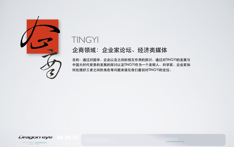 阴阳结合,又生三(气),这是 “TINGYI”独特的气质,也是 “TINGYI”与企业的差异化所在。