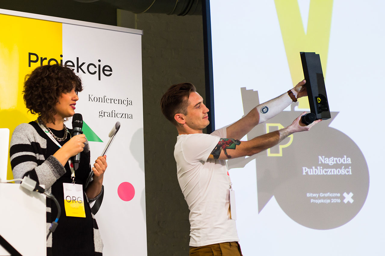 比赛作品是根据主办言提供的模板和参赛者的灵感设计一张海报。陪审团在展会期间选出了20张最好的海报(近60张)。观众有机会通过投票选择自己喜爱的作品。有三个主要奖项:评审奖、观众奖和组织者奖。我们为所有三个类别设计了定制的奖牌。观众奖是由Magierski设计的雕像,并以Oskar Podolski的获奖者的名字签名。