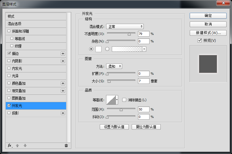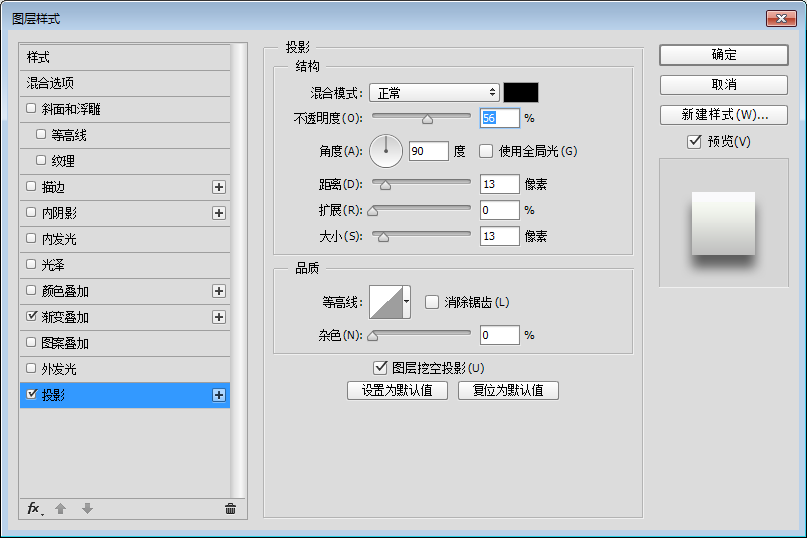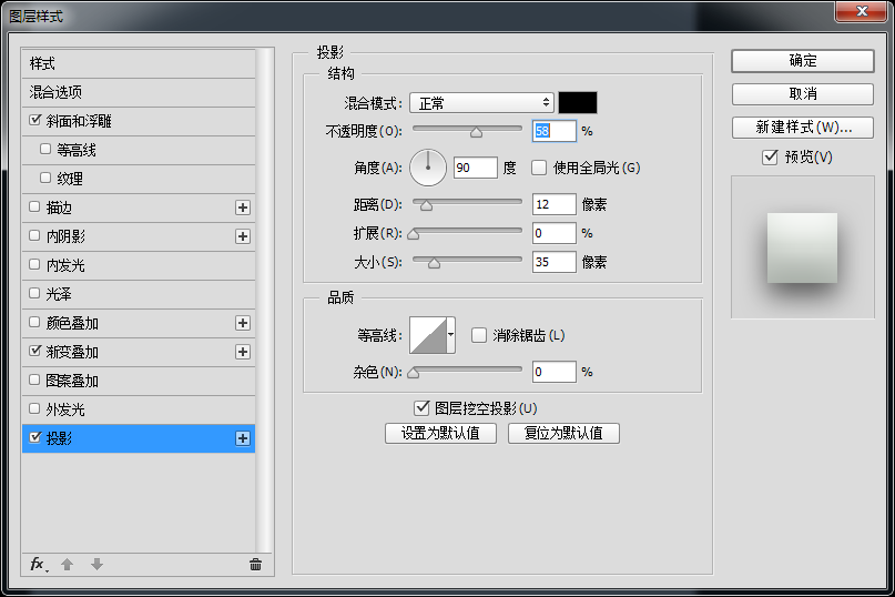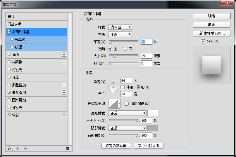 使用圆角矩形工具、绘制一个615px*615px圆角半径为90px底座,并为它添加图层样式。