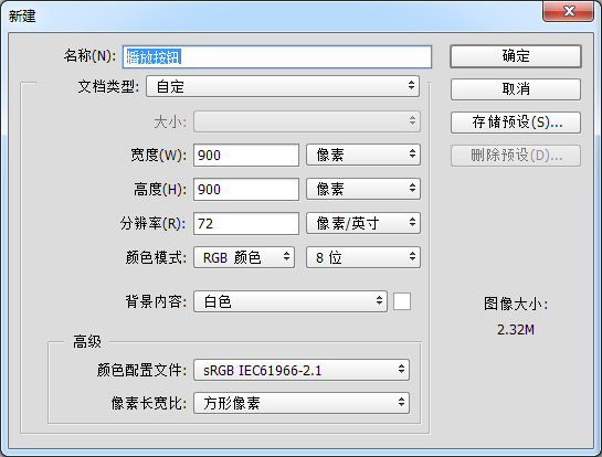 首先新建画布900px*900px画布,命名为播放按钮,为背景添加颜色#3d3835。