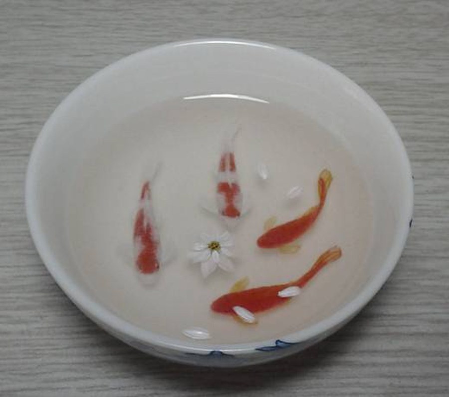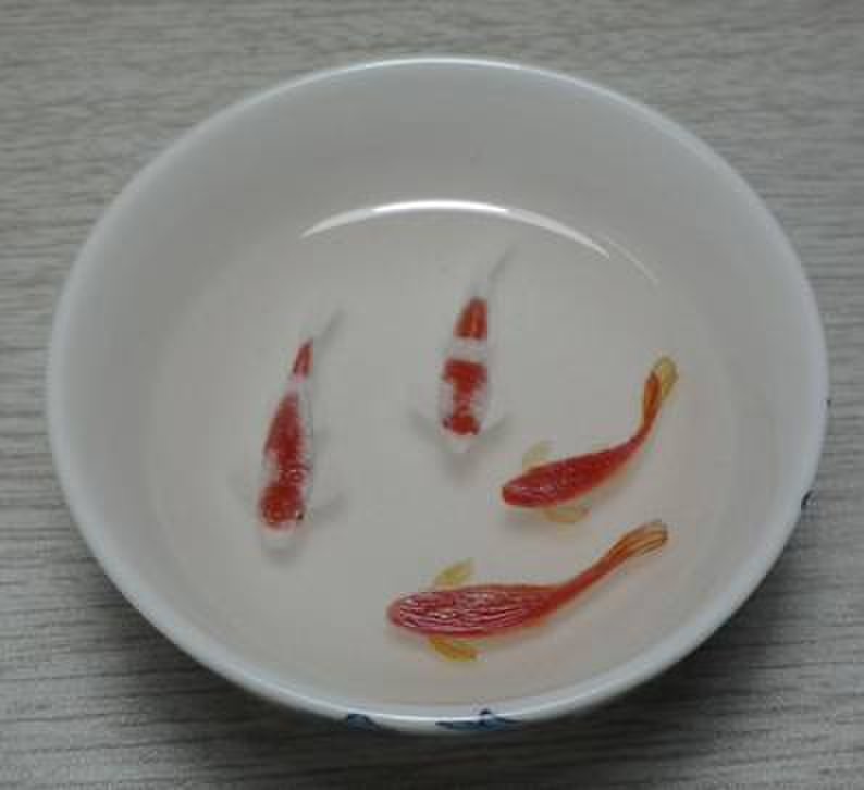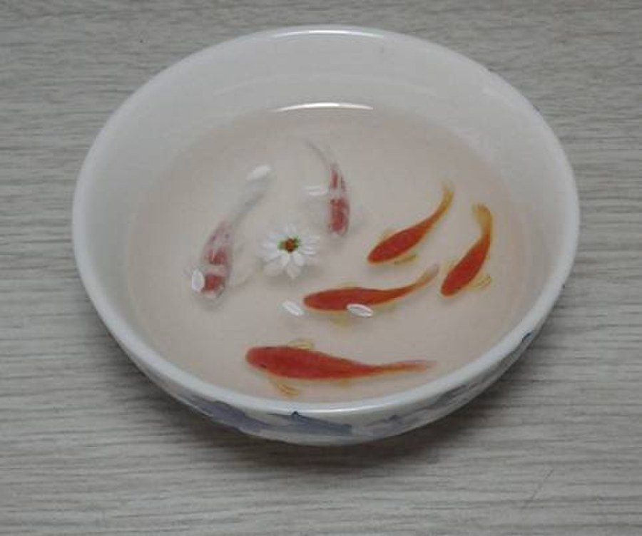 树脂金鱼画,日本画家深堀隆介近年创作多样画品,为世人而知,早年间国内有“琥珀金鱼”和“金鱼漆画”与其类似,琥珀金鱼更接近标本类实物,而漆画已少见很久了。