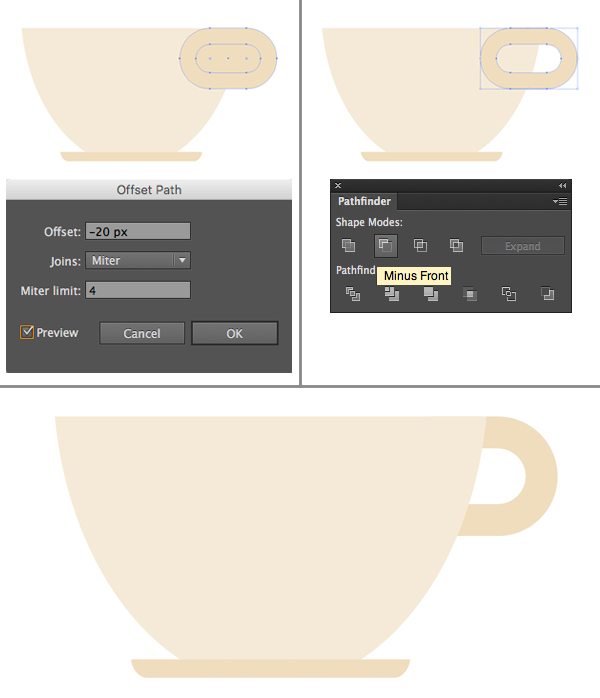选择该句柄,然后点击对象>路径>偏移路径,将偏移值设置为- 20 px,以便在内部创建较小的形状。
