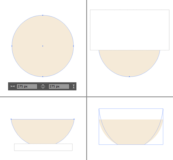取橡皮擦工具(shift - e),按住Alt键,擦去圆的上半部分。对底部的形状做同样的处理,擦除一小部分,使杯底的底部平整。