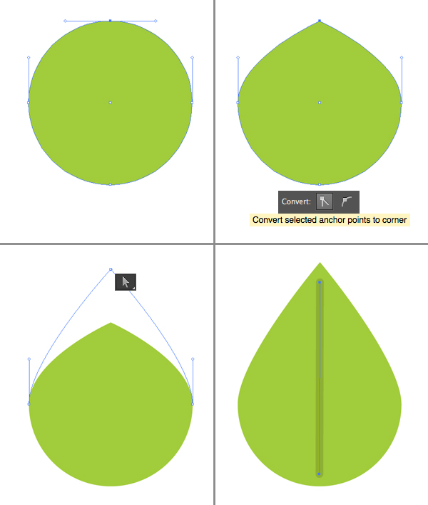 让我们为我们的茶做一个简单的绿叶。使用椭圆工具(L)90×90 px圆。选择它的顶部锚点与直接选择工具(A),并将选定的锚点从控制面板上转换为顶部。