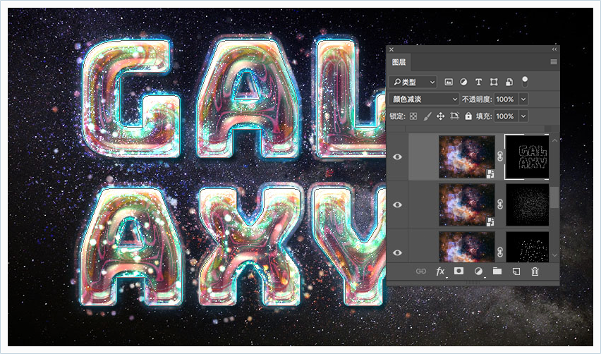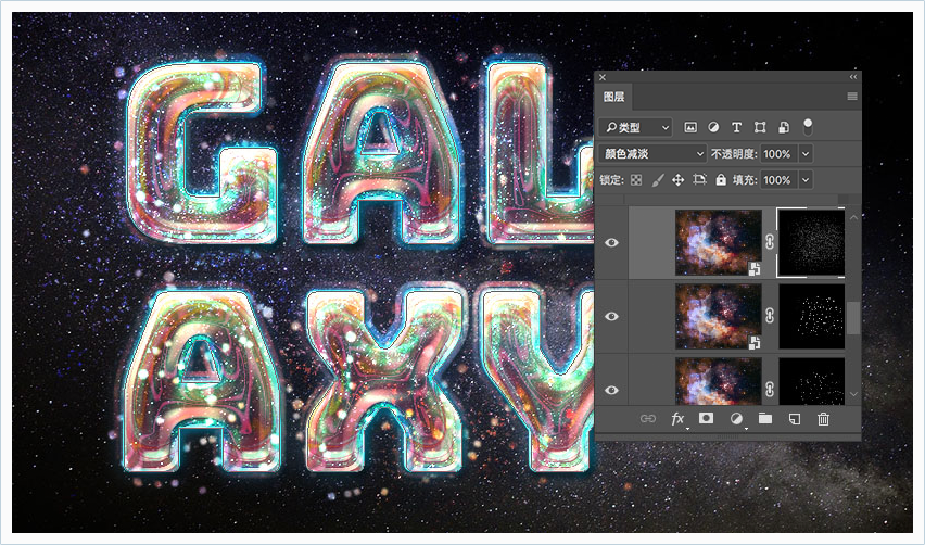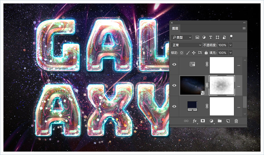 本教程主要运用图层样式,纹理和画笔来创建炫酷的星际文本效果。