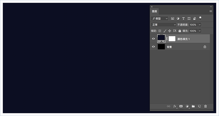 创建一个新的960 x 720 px文档。点击“ 图层”面板底部的“ 创建新的填充或调整图层”图标,选择“纯色”,使用颜色: #0c0e22。