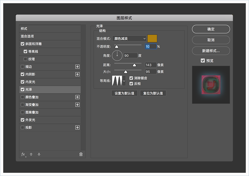 描绘BG Stroke 4图层蒙版的缩略图工作路径,并将图层的混合模式更改为颜色减淡。
