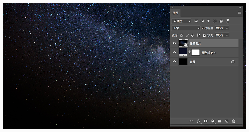 转到文件>置入链接的智能对象,打开Cosmos图片。根据需要调整大小,并将其重命名为背景图 片。