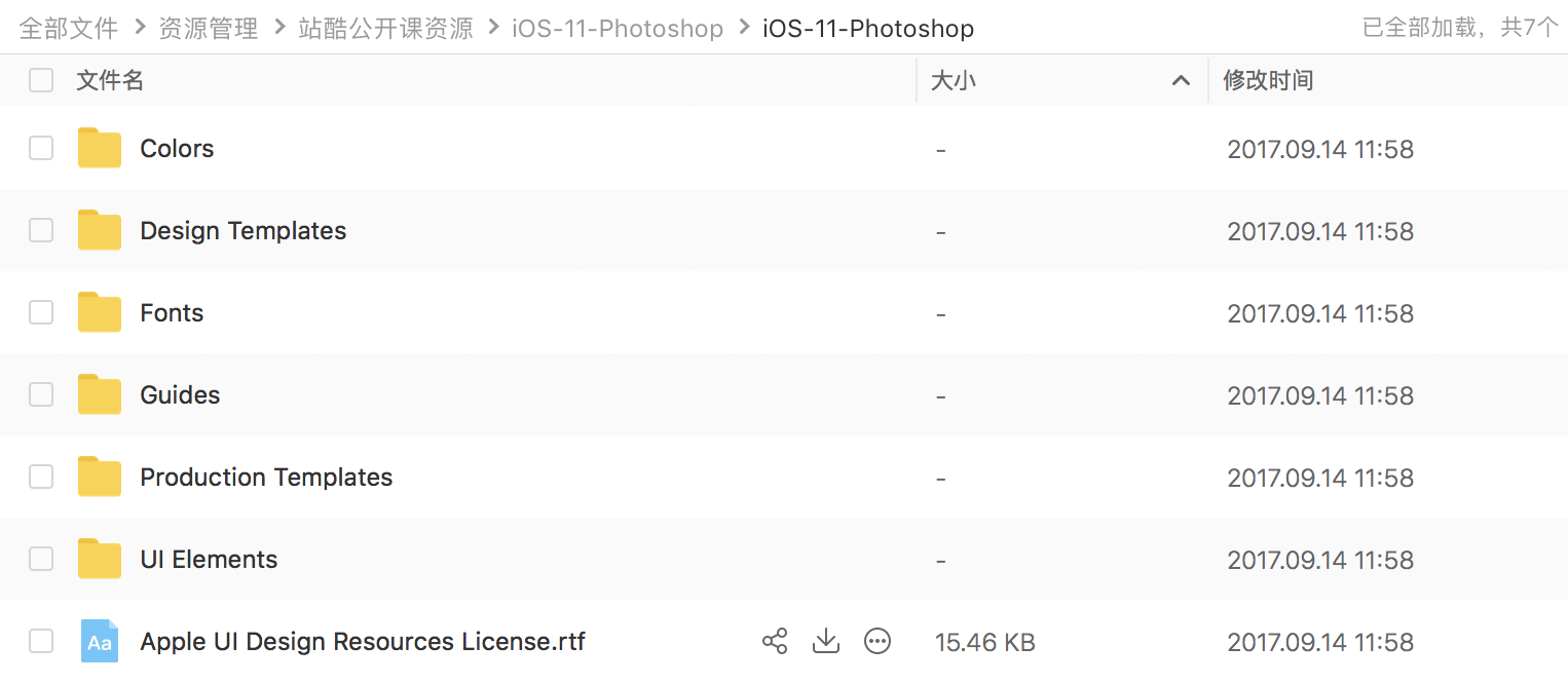 网盘包括IOS11官方开发文档、设计规范模板、公开课PDF等。