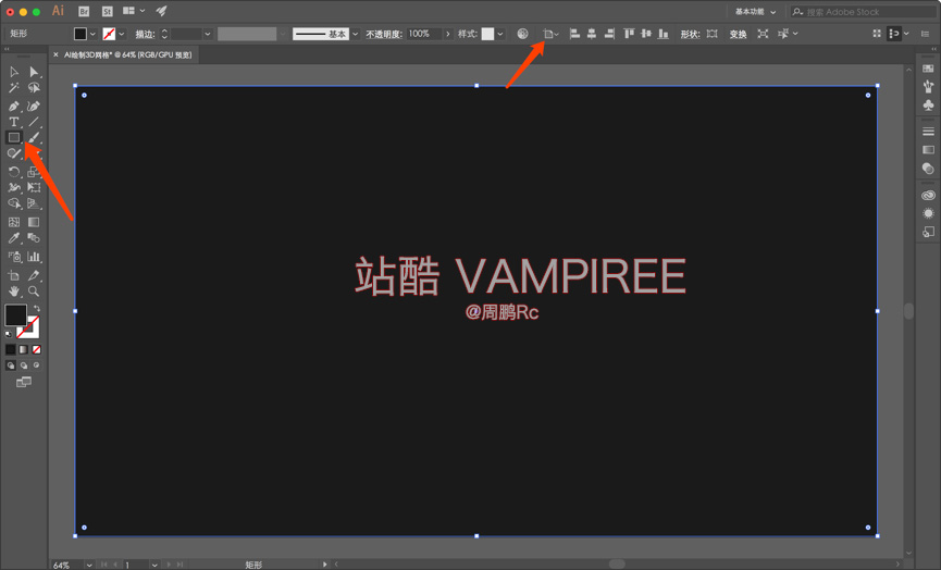 然后点击矩形工具绘制举行矩形,大小1920*1080 颜色1a1a1a然后点击对齐画板进行对齐。