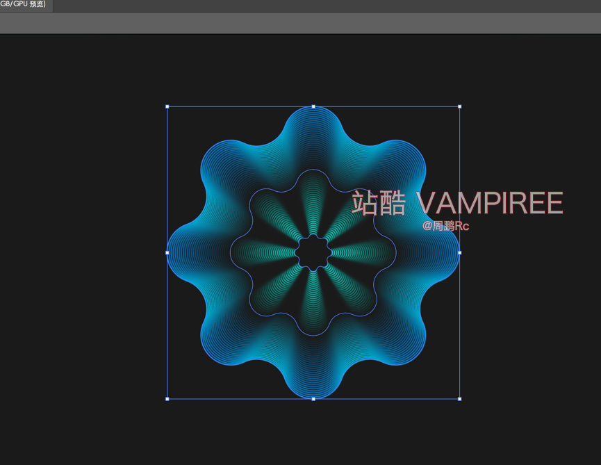 同上 选中其中最外面的那个环 然后修改渐变颜色 其中把黑 1a1a1a改成0071BF然后 互换位置 注意中间那个滑块 在靠右75%左右。