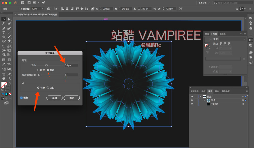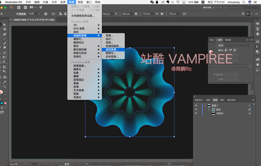 [3]然后选中整体 点击效果-扭曲和变化-波纹效果